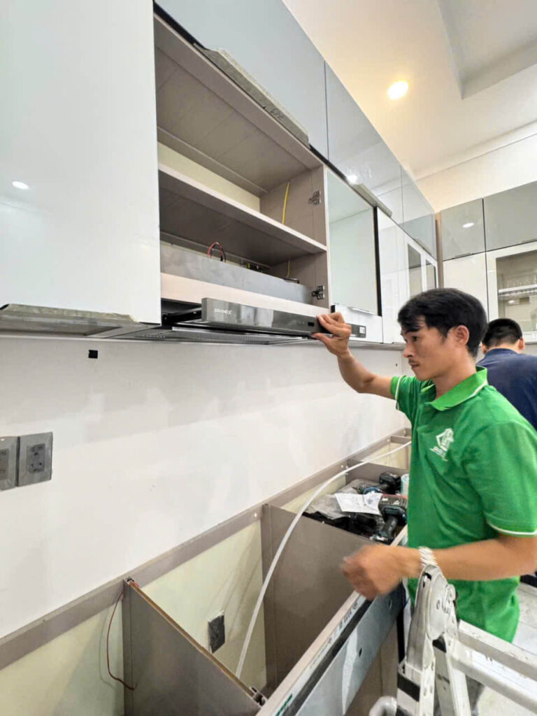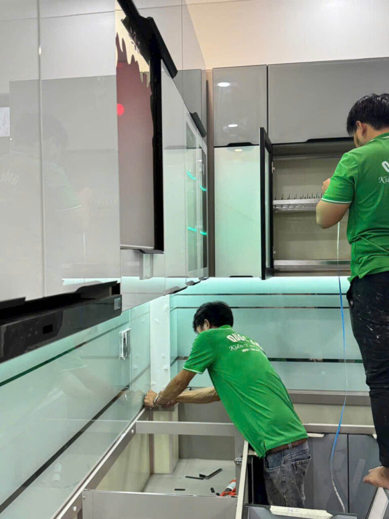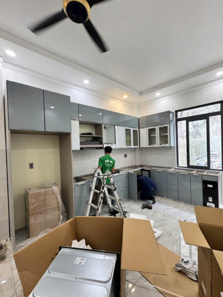 • Tủ bếp nhôm hợp kim – bền đẹp, không lo mối mọt
