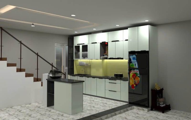 Với sự kết hợp hiện đại, giúp không gian bếp thoáng hơn, tiết kiệm và tối ưu không gian bếp