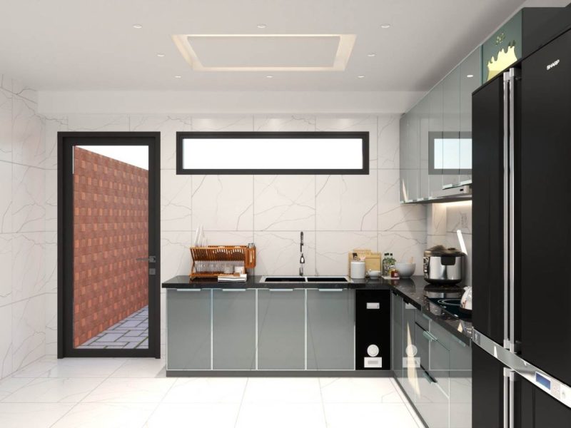 Khung tủ có thể được thiết kế theo hệ module với nhiều kiểu dáng khác nhau như chữ I, chữ L hoặc chữ U, tùy thuộc vào diện tích và bố cục của căn bếp.