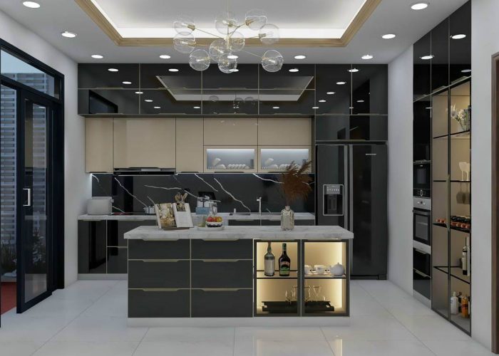 Sự kết hợp giữa nhôm luxury và kính tạo ra một vẻ đẹp hiện đại và tinh tế cho không gian bếp. Khung nhôm chắc chắn kết hợp với mặt kính sáng bóng mang lại sự sang trọng và thanh lịch, phù hợp với nhiều phong cách thiết kế nội thất từ cổ điển đến hiện đại.