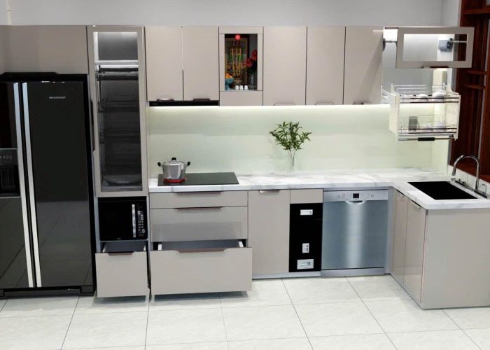 3. Các kiểu dáng tủ bếp nhôm cao cấp